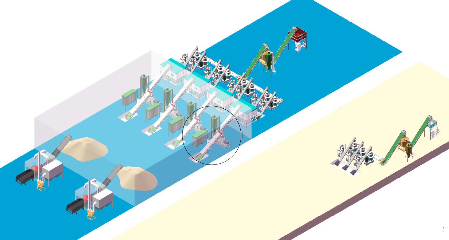 一條完整的顆粒生產(chǎn)線下來的話有下面幾個(gè)流程,以木屑顆粒為例: